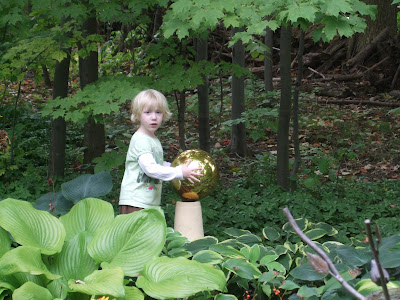 Our friend Sarah brought her three girls over for snacks and a garden walk. It was wonderful seeing the amazement in the girls' eyes as they explored the garden. The paths led from one new adventure to another. How magical the garden must look through the eyes of 4 and 5 year olds. The rabbits that we placed around the yard took on a new life through their eyes. It was a contest to find them all. They would rush this way and that each time a new rabbit was discovered. Everything in the garden transformed into a magical wonder. It was a joy to see the girls explore.